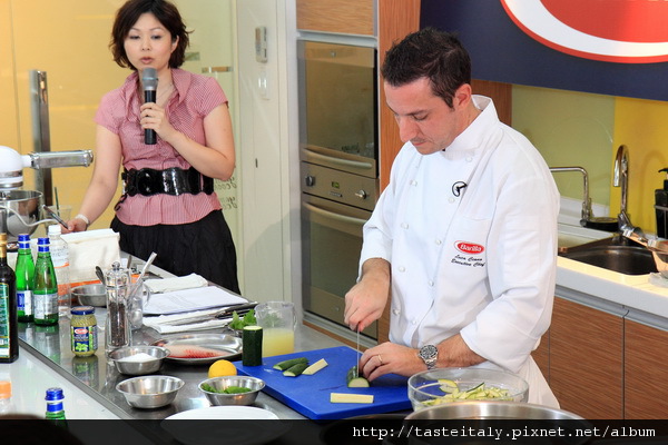 Luca主廚在教學中,散發專業與風趣的魅力,與學員之間互動愉快,對料理的專業問題也有多方面的交流與討論。
