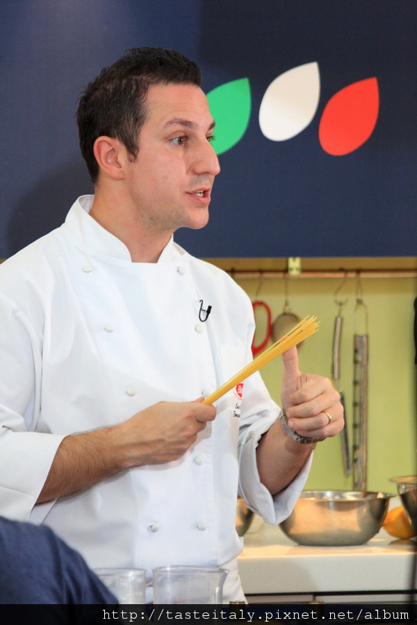Luca主廚在「百味來」廚藝學院任教,所以對義大利麵的知識非常豐富,Luca主廚由義大利麵的製作方法與品質判別都有詳細的描述,還教導學員如何煮出好吃的義大利麵的秘訣。
