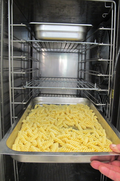 如果義大利麵需要預煮,在義大利的法律規定,不可以把義大利麵在常溫下放涼,需以冷卻機讓溫度急速下降,以免高溫造成細菌滋生。