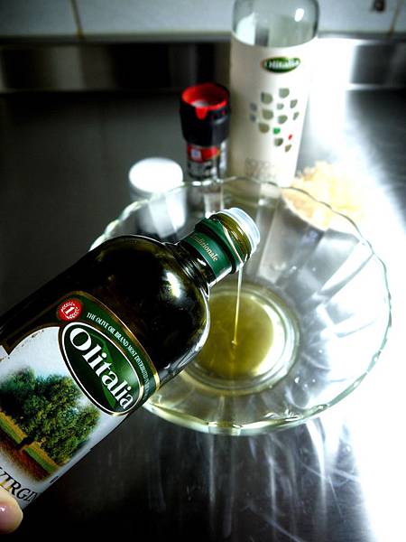 特級冷壓橄欖油、白酒醋、鹽巴、黑胡椒調成醬汁後,辦入柚子肉。