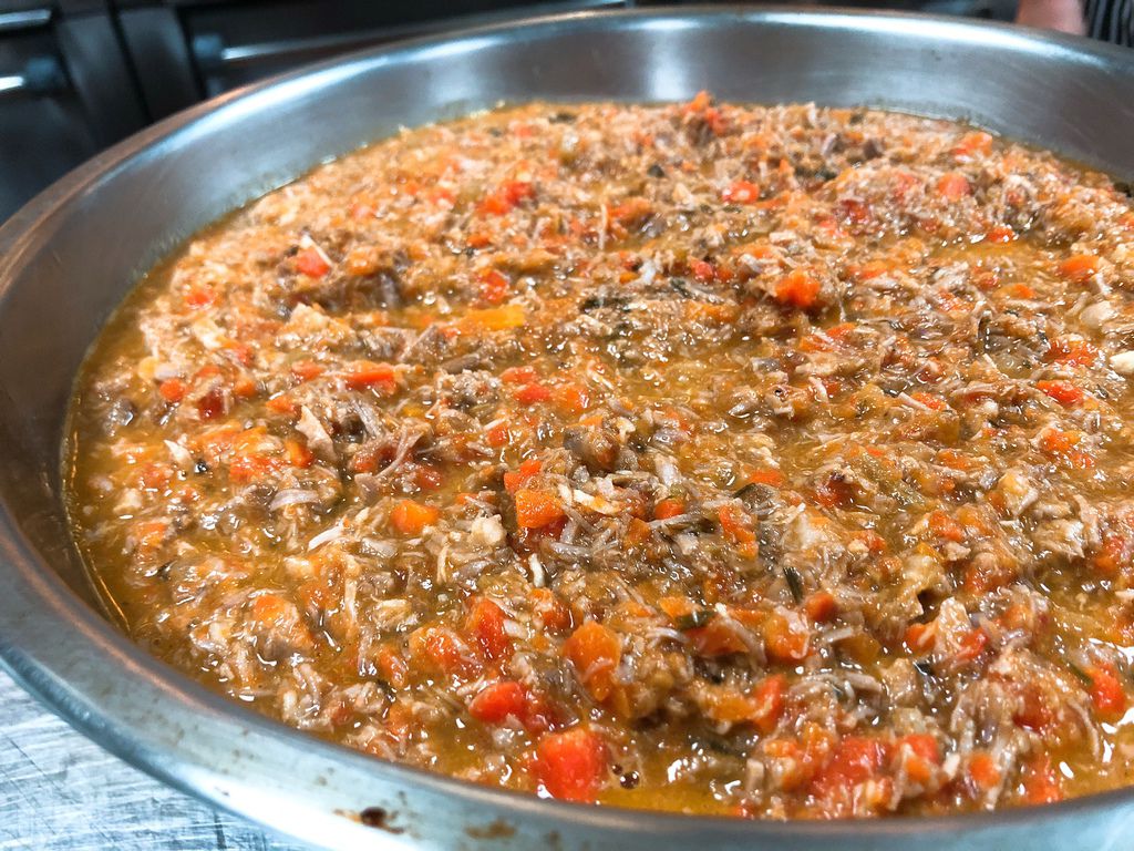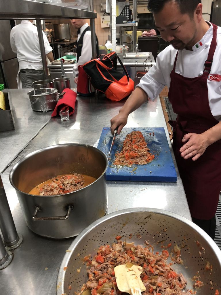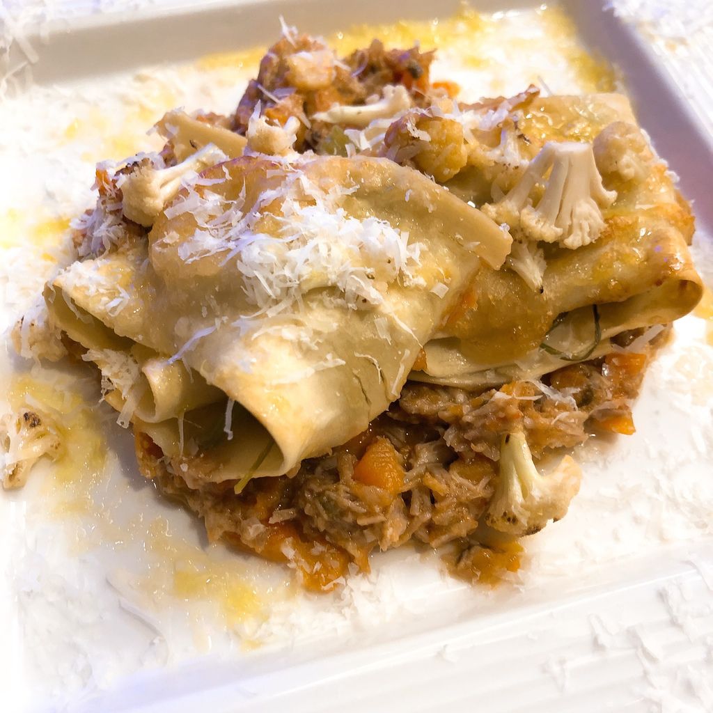 肉醬- 豬肩肉(含油脂)400公克、鹽巴適量、奧利塔純橄欖油適量、水適量、蒜仁2瓣、紅蘿蔔(小)1根巴洋蔥(中)1顆、西芹 2根、新鮮迷迭香 2支、新鮮鼠尾草 2支、Cantine Ronco白葡萄酒 100毫升、ORO去皮整顆蕃茄200公克、白胡椒粉適量