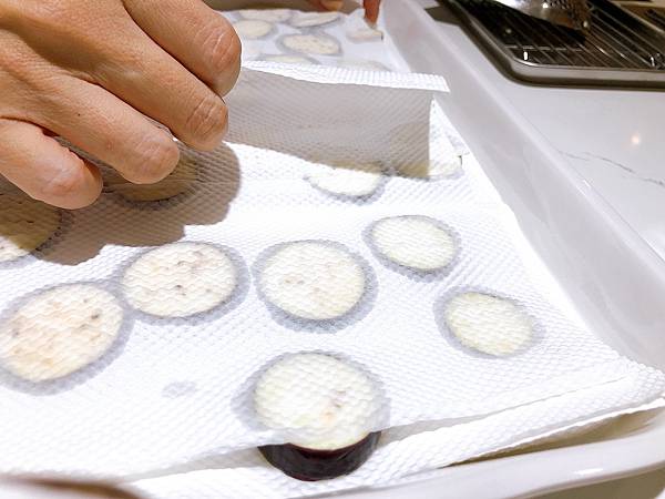 這動作可讓茄子水份變少、香味提高,且讓茄子定型,烹煮後不會糊掉。